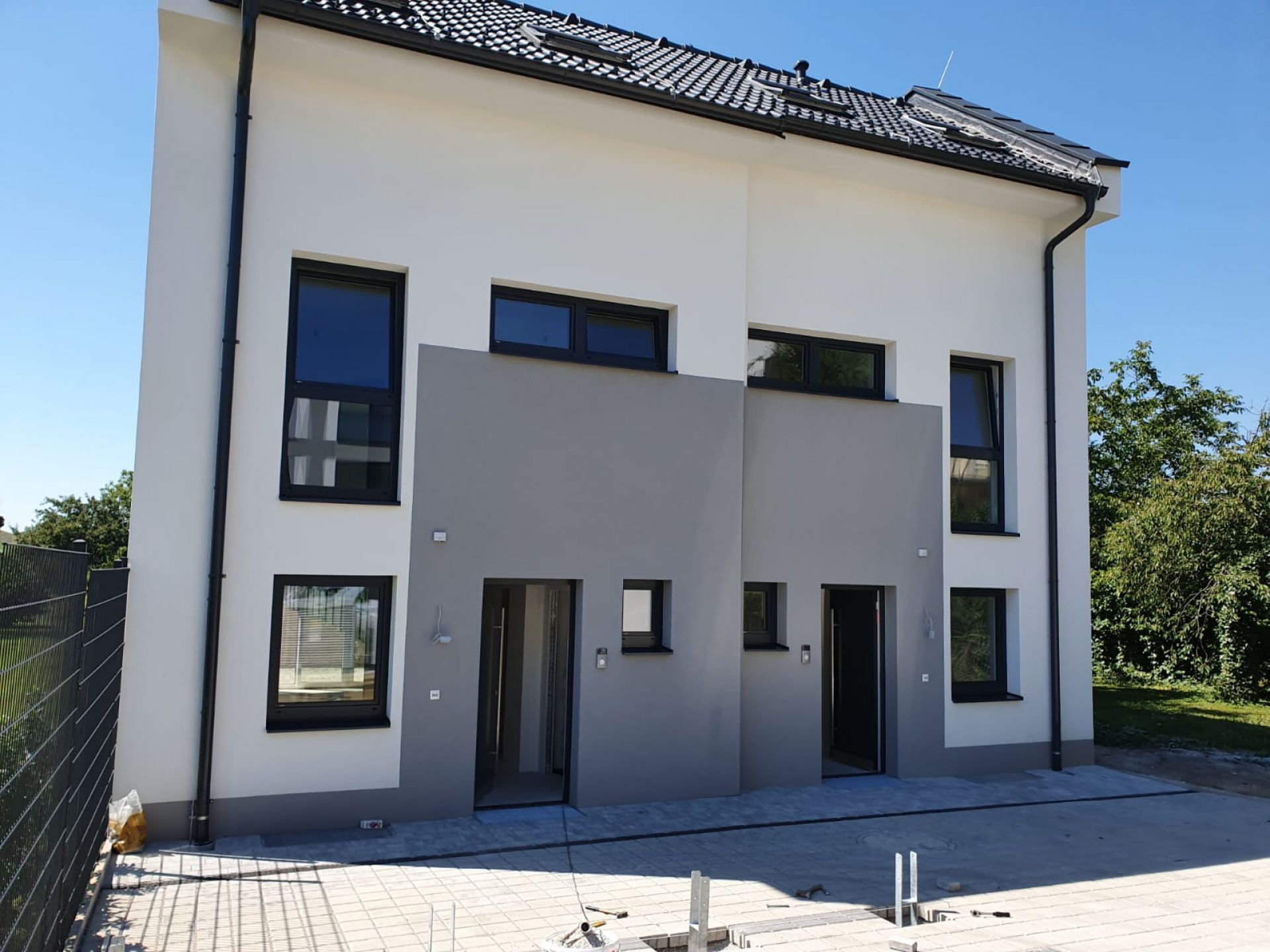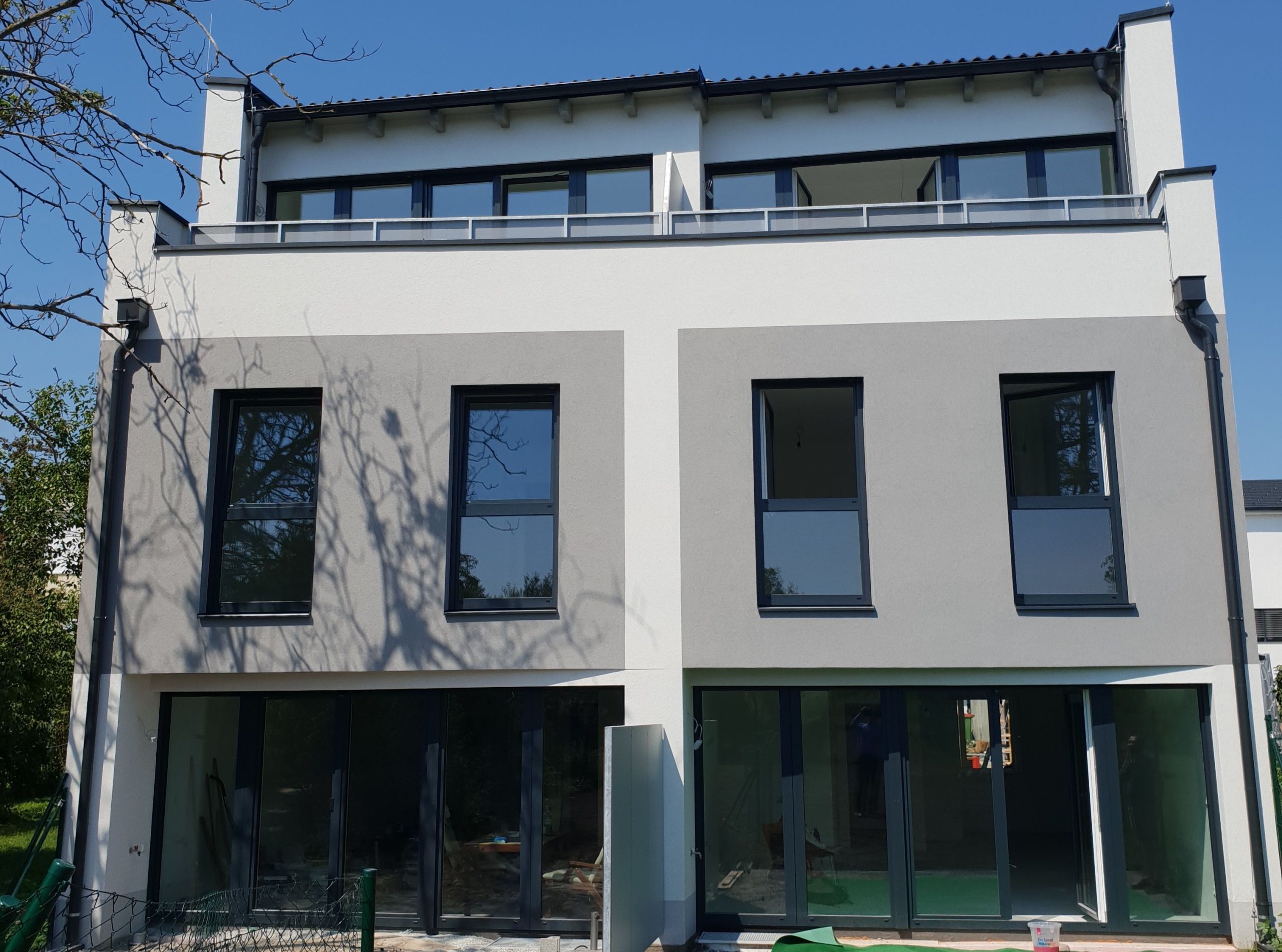 Alle Einheiten haben eine Gartenterrasse, 2 Doppelhaushälften haben auch eine Dachterrasse